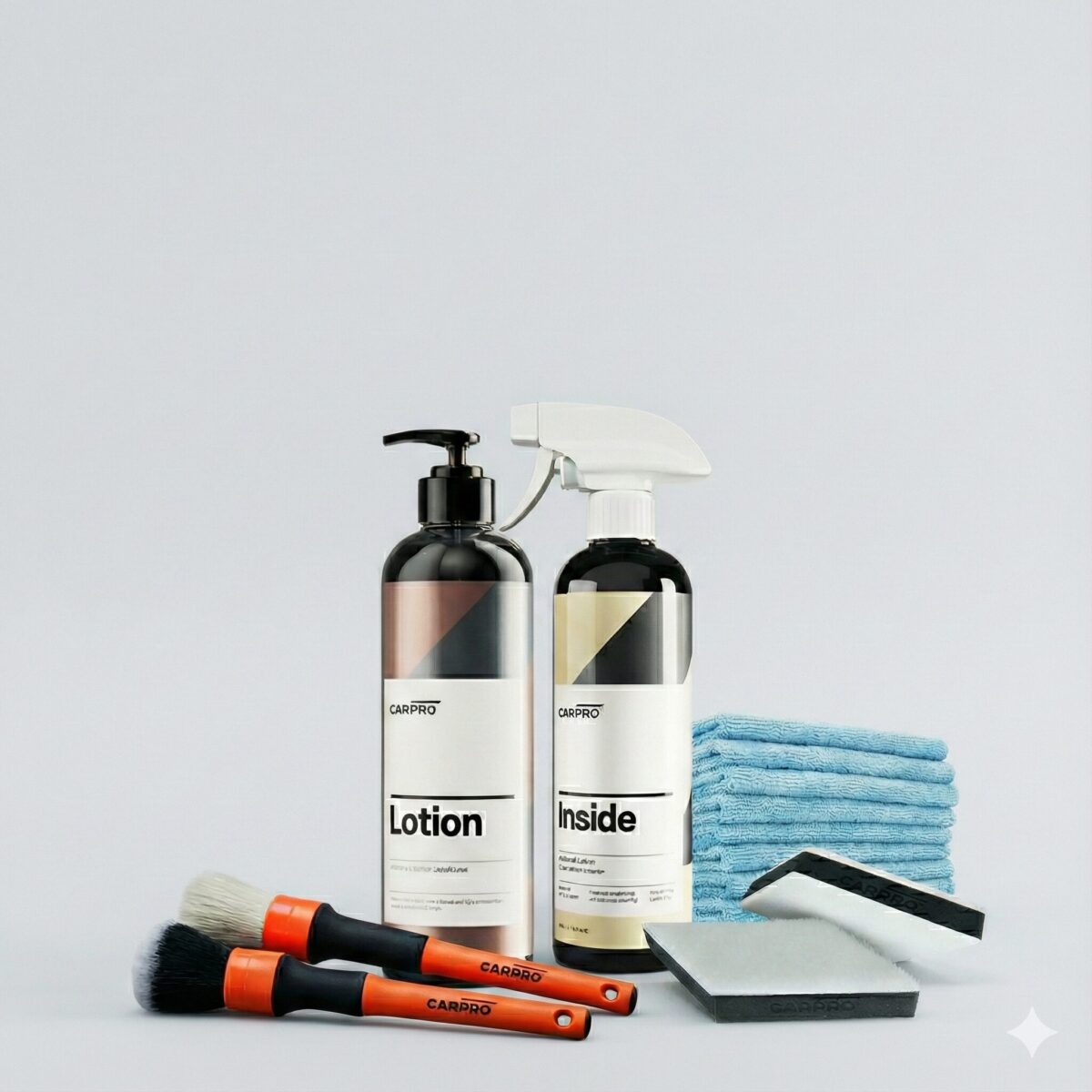 • CARPRO Detailing Brush set – ფუნჯები ავტომობილის დითეილინგისთვის, შედგება 2 ფუნჯისგან ტახის ჯაგარის და სინთეტიურისგან.